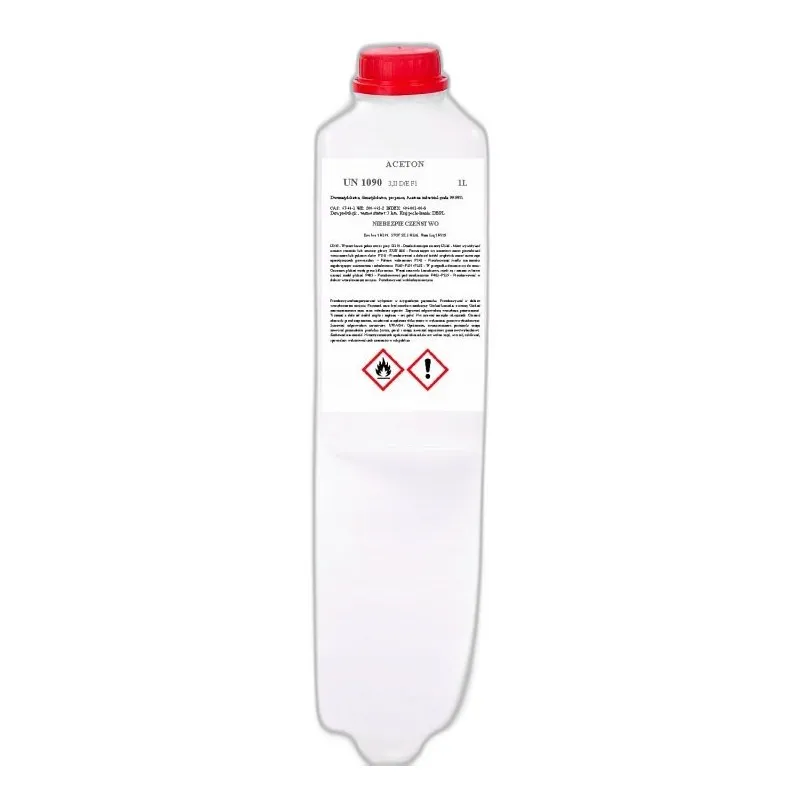 Aceton chemiczny w butelce 1 litr (C3H6O) powszechnie znana jako aceton, dimetyloketon to odczynnik chemiczny przeznaczony wyłącznie do zastosowań laboratoryjnych, badawczych i profesjonalnych.