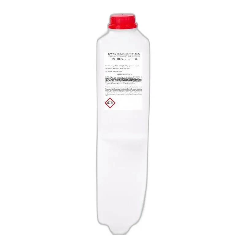 Kwas fosforowy E338 do zastosowań technicznych i domowych 1 litr (H3O4P) powszechnie znana jako kwas ortofosforowy, kwas fosforowy to odczynnik chemiczny przeznaczony wyłącznie do zastosowań laboratoryjnych, badawczych i profesjonalnych.